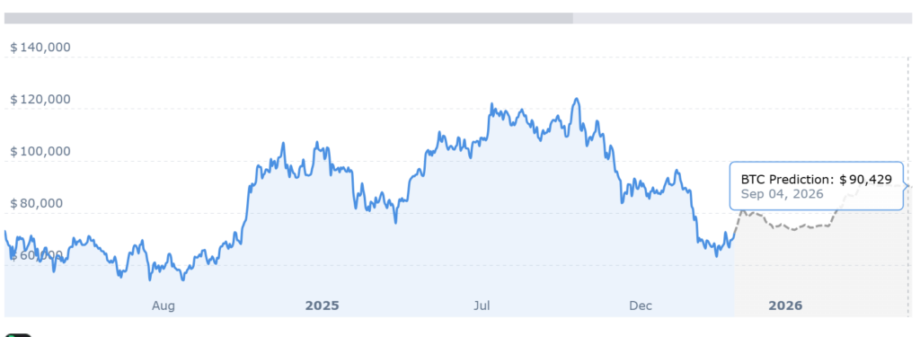 Per CoinCodex BTC stats, Bitcoin may finally rise and peak to hit $89K around June 2026.