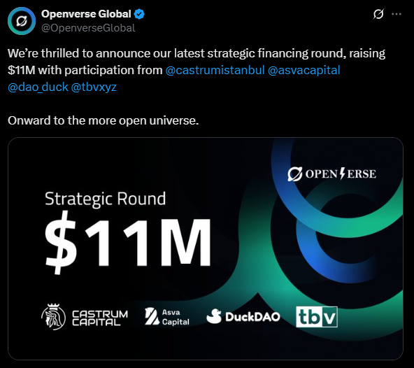 Openverse Network, a Layer 0 blockchain infrastructure platform, has raised $11 million in a strategic funding round.